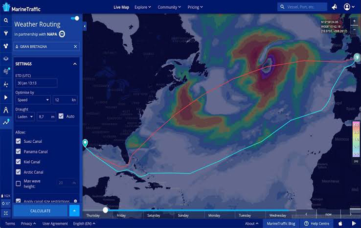 Maintaining the ship's safety by avoiding extreme adverse weather conditions.